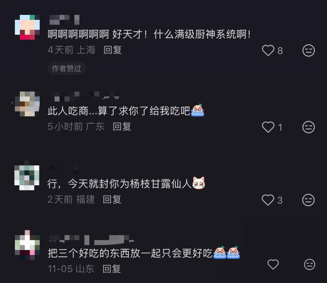 有网友看完博主分享的“固体杨枝甘露”做法后,感叹:“什么满级厨神系统啊!”