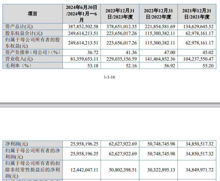 2021年至2023年,星图测控分别实现营业收入1.04亿元、1.41亿元、2.29亿元;归母净利润分别为3485.05万元、5074.87万元、6262.79万元。
